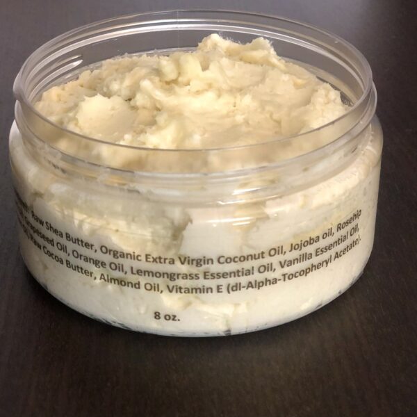 No known artificial or synthetic ingredients, all butters and oils are directly derived from the earth. “Hint of Mint” contains, Raw Shea Butter, Organic Extra Virgin Coconut Oil, Sweet Almond Oil, Grapeseed Oil, Jojoba Oil, Rosehip Oil, Raw Cocoa Butter, Peppermint Essential Oil, Pure Undiluted Vanilla Essential Oil, Vitamin E (dl-Alpha Tocopheryl Acetate).